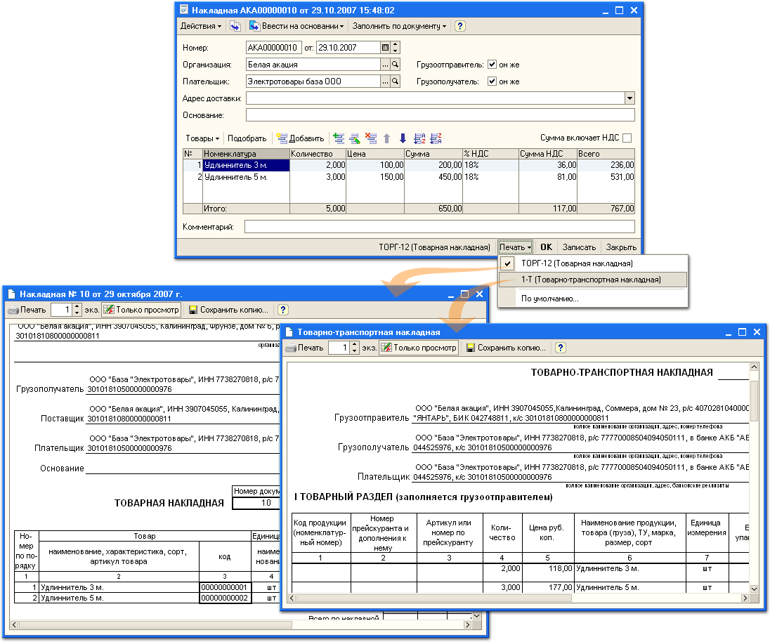 Быстрое заполнение документовПрограмма хранит сведения о контрагентах, сотрудниках, и об организациях, что позволяет избежать повторного ввода одних и тех же данных. Ввод одних документов на основании других ускоряет оформление комплекта связанных документов (например: счет на оплату - накладная - счет-фактура). Автоматизация кассовых операцийПо введенным кассовым документам автоматически формируются кассовая книга и журнал регистрации кассовых ордеров. Обмен информацией с системами "Клиент банка"Программа позволяет передавать информацию о выписанных платежных поручениях в специализированные программы, предназначенные для обмена информацией с банками по электронным каналам связи. Встроенный классификатор банковДля ввода банковских реквизитов используется встроенный классификатор банков Российской Федерации. Достаточно указать БИК, и все реквизиты банка подставятся автоматически. Классификатор банков можно обновлять через Интернет. Печатные формы документовПечатные формы документов программы соответствуют унифицированным образцам. Редактор шаблонов печатных формС помощью встроенного редактора шаблонов можно корректировать образцы печатных форм документов: изменять расположение реквизитов, ширину колонок, добавлять текст или вставлять логотип организации. Сохранение печатных форм в файлПечатную форму документа можно сохранить в виде файла, например, чтобы отправить счет по электронной почте. Регистрация и поиск документовВведенные документы регистрируются в журналах и сохраняются в информационной базе. Встроенные средства поиска позволяют быстро найти нужный документ по его номеру и другим данным. Удобный интерфейсВсе операции по работе с документами выполняются через панель функций - специально организованную рабочую область, которая предоставляет удобный доступ к средствам работы с документами. Обновление программы через ИнтернетПрограмма автоматически проверяет наличие новых версий, а при необходимости получает и устанавливает обновление через Интернет. Это, в частности, позволяет оперативно получать новые версии форм первичных документов при их изменении. |